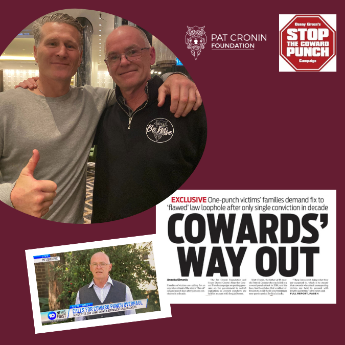 Resources Resources to help learn, grow and make an impact. Victoria’s flawed Coward Punch laws need to be overhauled Culture and society The Pat Cronin Foundation’s push to fix Victoria’s flawed Coward Punch laws is louder than ever, fuelled by major media coverage. Read more Win a Luxury Caravan and Make a Difference News Tickets are selling fast. Pat Cronin Foundation Retreat Caravans Raffle is your chance to WIN a brand new Whitsunday XE 219B… Read more Pat’s Match Events Hot on the heels of the Pat Cronin Foundation Round, the countdown is on to the second annual Pat’s Match at Sandringham Football Club on Sunday, May 19, 2024. Read more Booking a Be Wise presentation – answers to frequently asked questions News Wondering whether a Be Wise presentation is right for your school? How effective are they? Do I need to prepare students? All these questions and more are answered here. Read more Book a presentation now for 2024 News With every state in Australia covered, now’s the time to book a potentially life-saving Be Wise presentation in 2024. In… Read more We need to start early to end social violence Changing behaviour With the official launch of the Prep-Grade 6 Act Kindly Activity Kit, schoolchildren as young as five are set to be taught that violence is never ok. Read more Be Wise Walk messages from two of our biggest supporters Events Check out these special messages from Matthew “Richo” Richardson and SBS cycling commentator Matthew Keenan ahead of this year’s Be Wise Walk. Read on also for our top five tips for enjoying the day. Read more We couldn’t have said it better… Understanding violence Our newest presenter, Peter Kennedy, has had an incredible start in delivering our first Violence is Never OK sessions in Queensland – proving the power of Pat’s story wherever it’s told. Read more Pat Cronin Foundation call to teachers and students Events We are calling for assistance from teachers and students to ensure its violence-prevention programs impact as many young people as possible. Read more Get ready for the Run 2 Be Wise Events Two passionate supporters are getting ready to stretch their limits of endurance to the extreme in the Pat Cronin Foundation’s Run 2 Be Wise. Read more We’re embarking on a landmark project with YMCA Victoria News The Pat Cronin Foundation is partnering with YMCA Victoria to reduce violence on and off sporting fields. Read more Thank you for helping us make the Be Wise Ball so great Events If there’s one thing the Be Wise Ball does well, it shines a light on the Pat Cronin Foundation’s wonderful supporters Read more 1 2 3 4 5 … 8